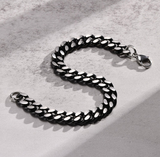 Norway Black & Silver Cuban Link Bracelet for Men