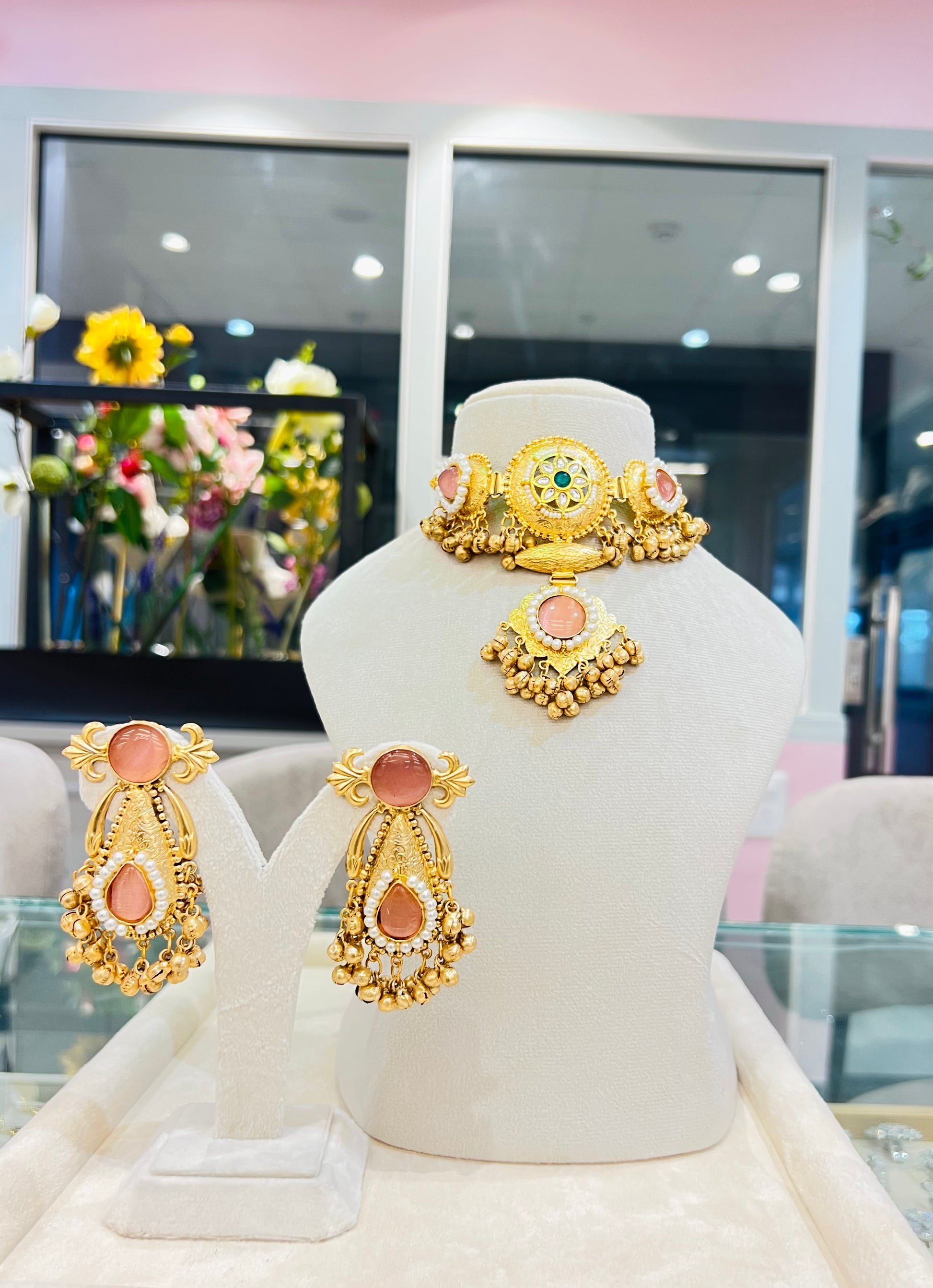 Ishani Kashmiri Choker with Jhumkaa (Peach & Green)